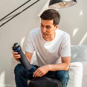 Конструкция крышки позволяет открыть бутылку, не касаясь питьевого горлышка, что гарантирует гигиеничность в использовании. Благодаря полупрозрачному корпусу вам всегда понятно, сколько жидкости осталось в бутылке.
