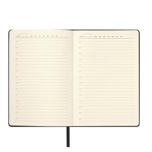 Недатированный ежедневник Molto в гибкой обложке из высококачественной искусственной кожи сочетает в себе практичность и стильный дизайн. Текстурированная матовая поверхность с деликатным рельефом имитирует натуральную кожу, а скругленные углы обложки и блока добавляют изящества.