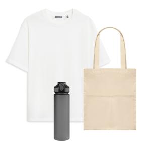 Набор из футболки, сумки и алюминиевой бутылки для воды доступен в разных цветах, благодаря чему станет идеальным выбором для приветственного сета на корпоративном мероприятии.