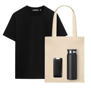 Набор с одеждой KRIS (футболка, аккумулятор, термобутылка, шоппер), черный, S