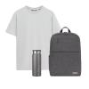 Набор из футболки, сумки и алюминиевой бутылки для воды доступен в разных цветах, благодаря чему станет идеальным выбором для приветственного сета на корпоративном мероприятии.