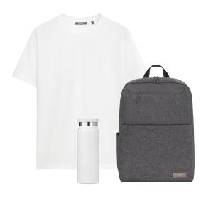 Набор из футболки, сумки и алюминиевой бутылки для воды доступен в разных цветах, благодаря чему станет идеальным выбором для приветственного сета на корпоративном мероприятии.