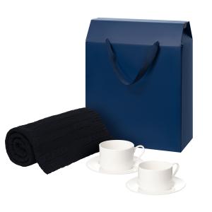 Подарочный набор Мокко (Mokko), Фадо (Fado), темно-синий в коробке-пакете (две чайных пары, плед)