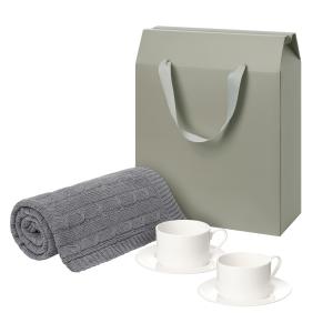 Подарочный набор Мокко (Mokko), Фадо (Fado), серый в коробке-пакете (две чайных пары, плед)