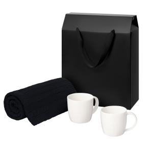 Подарочный набор Дафна (Dafna), Фадо (Fado), темно-сиий в черной коробке-пакете (две фарфоровых кружки, плед)