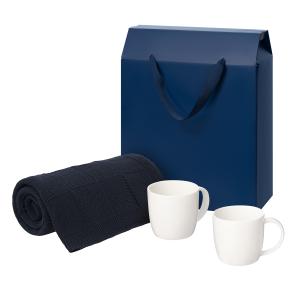 Подарочный набор Дафна (Dafna), Селла (Cella), синий в коробке-пакете (две фарфоровых кружки, плед)