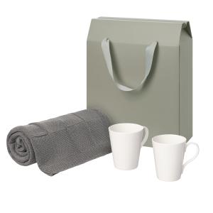 Подарочный набор Веста (Vesta), Селла (Cella), серый в коробке-пакете (две фарфоровых кружки, плед)