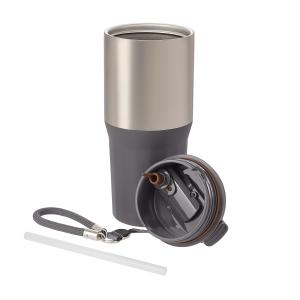 Внутренний слой из пищевой стали 304 марки, которая не впитывает запахи, не окисляется и сохраняет вкус напитка. Внешний корпус надежно защищен 201 сталью с комбинированным покрытием, где матовая текстура сочетается с гладким акцентом. В комплекте идет удобный, прочный и легко снимаемый ремешок, который превращает термокружку в идеальный аксессуар для активного образа жизни.