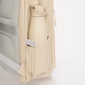 На внешней стороне расположен глубокий карман на скрытой молнии для хранения мелочей, а боковые карманыоснащены фиксаторами для комфортной эксплуатации. Есть багажная лента на спинке. Рюкзак имеет две мягкие регулируемые лямки, а верхняя мягкая ручка дополнена ручкой-петлёй.