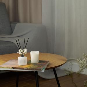 Состав: 5% ароматической композиции, соевый воск для длительного горения и чистой аромаотдачи, отсутствие вредных веществ и копоти.