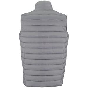 Приталенная модель, воротник-стойка. Застежка-молния в цвет жилета, два боковых кармана на молнии в цвет подкладки, окантовка по низу жилета тон в тон.
