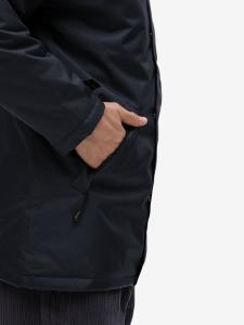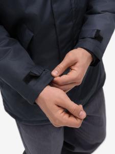Застежка-молния с двумя замками и планкой на липучках и скрытых кнопках. Капюшон с подкладкой из флиса убирается в воротник. Два внешних кармана на молнии, один внутренний. Регулируемые манжеты на липучках.