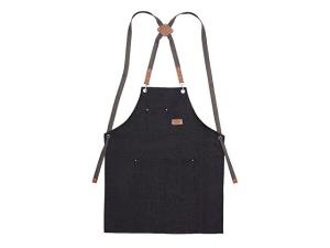 Стильный фартук из органического хлопка с большим двойным карманом спереди и регулируемой лямкой. Длина лямки регулируется пуговицей.