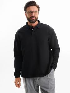 Рубашка поло оверсайз с длинным рукавом Heritage, черная, размер XXL