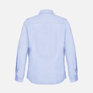 Классическая женская рубашка приталенного силуэта. Выполнена из ткани поплин, благодаря чему она приятна на ощупь, хорошо держит форму и меньше мнется. Идеальный вариант для повседневного использования.