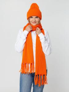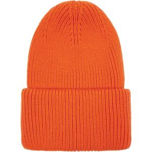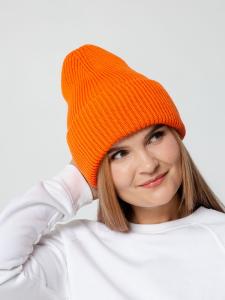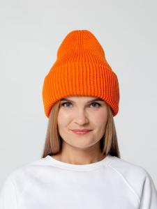 Удлиненная шапка объемной фактурной вязки с отворотом.