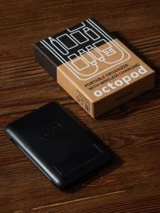 Octopod — компактная станция для беспроводной зарядки, которая укомплектована ключом для слота SIM-карты, кабелем с разъемами USB Type-C-Type-C, переходниками на разъемы lightning, USB Type-A и micro USB.