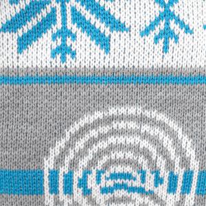 Шапка с вывязанным логотипом и индивидуальным рисунком в фирменной цветовой гамме.
