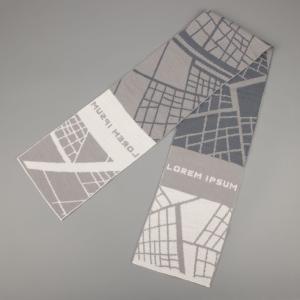 Шарф с вывязанным логотипом и индивидуальным рисунком в фирменной цветовой гамме.