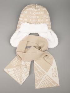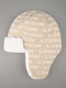 Шапка с вывязанным логотипом и индивидуальным рисунком в фирменной цветовой гамме.