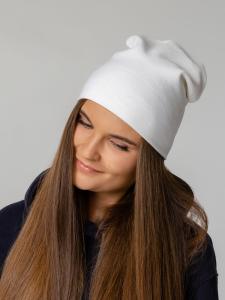 Двухслойная шапка-бини тонкой вязки, которую можно носить как с подворотом, так и без.