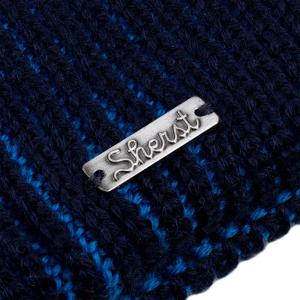 Металлический шильд с названием бренда расположен у заднего шва шапки. Это оставляет место спереди для пришива лейбла или шильдика с логотипом заказчика.