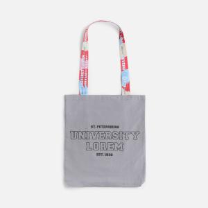 Сумка состоит из прочной базовой основы в трех цветах: классический черный, универсальный серый или глубокий синий — и двух текстильных строп с возможностью полной запечатки. Длину стропы для ручки можно выбирать от 60 см (для ношения на руке) до 90 см. Увеличенная длина ручек позволяет более удобно размещать сумку на плече — или можно оставить хвостик свободным и получить милую деталь и дополнительную полезную площадь для размещения рекламного сообщения или логотипа.