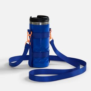 Сумка для бутылки из стропы Kesta построена по принципу конструктора из нескольких обязательных элементов: текстильных строп Fune 20 разной длины, двух застежек-карабинов и двух полуколец. Благодаря такой системе сумка легко адаптируется под конкретную бутылку — учитывает ее форму, диаметр и высоту, обеспечивая плотную посадку и комфорт при переноске.