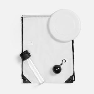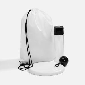 Размер: бутылка: диаметр 6,5 см; высота 24 см; футляр для плаща: диаметр 6,6 см; плащ: 120х90 см; тарелка-фрисби: диаметр 23 см, высота 2 см; рюкзак-мешок: 37х47 см