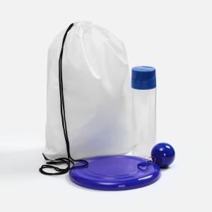 Размер: бутылка: диаметр 6,5 см; высота 24 см; футляр для плаща: диаметр 6,6 см; плащ: 120х90 см; тарелка-фрисби: диаметр 23 см, высота 2 см; рюкзак-мешок: 37х47 см