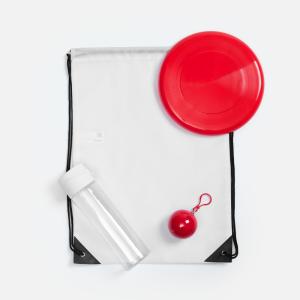 Размер: бутылка: диаметр 6,5 см; высота 24 см; футляр для плаща: диаметр 6,6 см; плащ: 120х90 см; тарелка-фрисби: диаметр 23 см, высота 2 см; рюкзак-мешок: 37х47 см