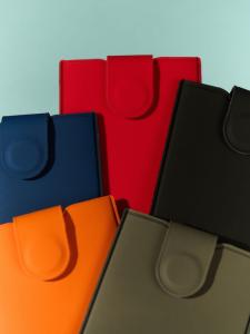 Благодаря выдвижному механизму, потянув за хлястик, можно с легкостью отыскать нужную карту. Магнит на хлястике надежно защитит содержимое.