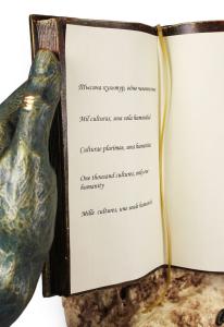 Скульптура «Тысяча культур» — это символичный подарок высочайшего качества. В нем затрагивается актуальная на сегодняшний день тема партнерства, единства и общности. В раскрытой книге можно прочесть символичную фразу «Тысяча культур, одно человечество» на пяти языках. Такой подарок станет шикарным интерьерным украшением библиотеки, рабочего кабинета и дома. Такой подарок также придется по душе работникам мысли - ученым, изобретателям, преподавателям, руководителям, да и просто книголюбам.