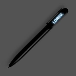 Шариковая ручка Lucenti с подсветкой логотипа — яркий и запоминающийся промоинструмент! Если логотип нанести в верхней части корпуса методом гравировки, то он будет подсвечиваться при выдвинутом стержне, создавая эффект «живого» бренда, который легко заметить даже в темноте.