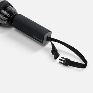 Складываясь после дождя, он прячет мокрую поверхность внутри, а сухая остается снаружи: в закрытом положении зонт не побеспокоит окружающих и не намочит одежду. Благодаря застежке на ремешке зонт удобно подвесить, например, на рюкзак.