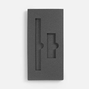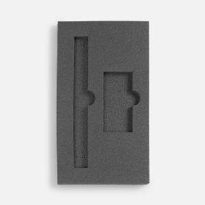 Ложемент, изготовленный из материала Izolon 500 черного цвета, представляет собой многослойную конструкцию, состоящую из нижнего слоя толщиной 5 мм и верхнего слоя толщиной 10 мм. В соответствии с утвержденным макетом, проемы для размещения предметов могут быть спроектированы как в одном, так и в обоих слоях.