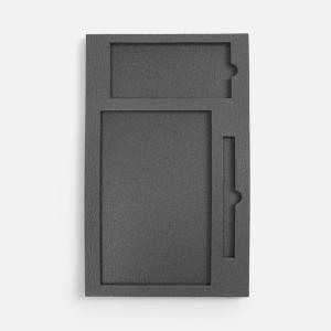 Ложемент, изготовленный из материала Izolon 500 черного цвета, представляет собой многослойную конструкцию, состоящую из нижнего слоя толщиной 5 мм и верхнего слоя толщиной 10 мм. В соответствии с утвержденным макетом, проемы для размещения предметов могут быть спроектированы как в одном, так и в обоих слоях.