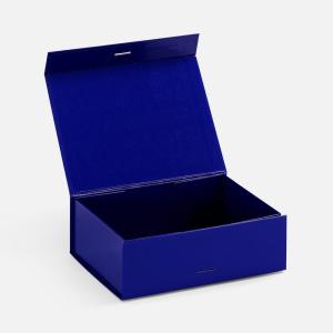 Коробка из переплетного картона, кашированного тонированной в массе крафтовой бумагой. Крышка на двух магнитах дополнительно фиксируется репсовой лентой.Толщина картона 2 мм.