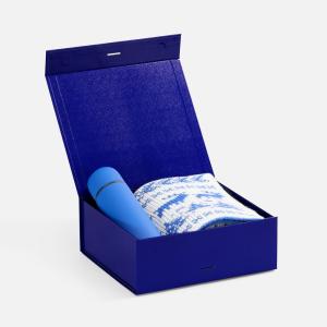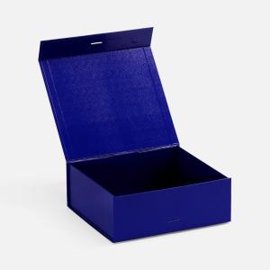 Коробка из переплетного картона, кашированного тонированной в массе крафтовой бумагой. Крышка на двух магнитах дополнительно фиксируется репсовой лентой.Толщина картона 2 мм.