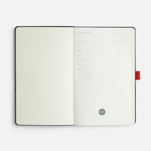 Ежедневник с гибкой обложкой, выполнен из материала Espresso, дополнен цветными ляссе и петлей-резинкой для ручки.