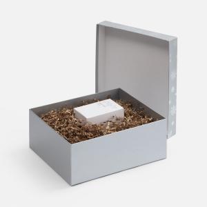 Коробка выполнена из переплетного картона толщиной 1,5 мм, кашированного бумагой TPG с тиснением серебристой фольгой.