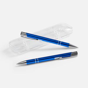 Набор из двух ручек Keskus с покрытием софт-тач в прозрачном пластиковом футляре.