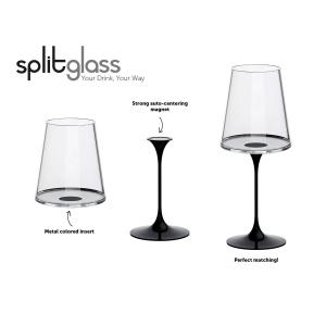 Идея гениальна в своей простоте: один предмет на два случая жизни. Хрустальный бокал на магните объемом 280 мл — это часть умной системы SplitGlass, где ножка и бокал существуют отдельно, но соединяются в единое целое. Дизайн бокала разработан известным испанским дизайнером Эктором Серрано. Используйте его как самостоятельный стакан для воды или моментально превращайте в элегантный бокал для белого вина, соединив с изящной алюминиевой ножкой черного цвета. Ваш стиль теперь может меняться так же легко, как и настроение. Просто поставьте хрустальный бокал из коллекции SplitGlass на ножку — мощный магнит мгновенно и надёжно соединит их. Бокал можно уверенно держать за ножку, наслаждаясь напитком. Чтобы разъединить их, достаточно лёгкого усилия. Никаких винтов, защёлок или сложных манипуляций — только магия магнита и продуманный дизайн. В комплекте: 2 хрустальных бокала, ножка поставляется отдельно – артикул 2025100