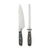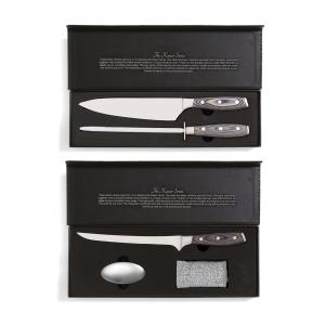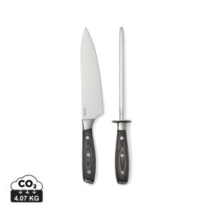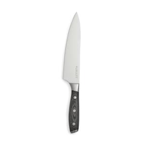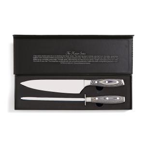 Почувствуйте себя настоящим шеф-поваром с набором из серии Kaiser! Он состоит из точилки и кухонного ножа, изготовленных из немецкой нержавеющей стали. Их ручки сделаны из паккавуда — это материал, состоящий из древесины ценных пород и смолы. Так называемая ламинированная древесина получается очень прочной и долговечной, не скользит в руке, не впитывает запахи и не поддается влаге. Сталь устойчива к повреждениям и неприхотлива в уходе: достаточно лишь периодически затачивать нож, и он прослужит вам долгие годы. Длина лезвия ножа: 20 см. Длина точилки: 33 см.