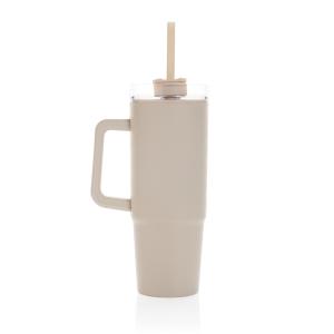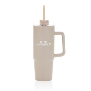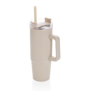 Откажитесь от одноразовых бутылок в пользу экологичной кружки Tana, изготовленной из переработанного пластика. Кружка с двойными стенками станет хорошим подарком для активных людей. Она станет незаменимым спутником во время прогулок, путешествий и поездок. Благодаря стильному внешнему виду ее можно взять с собой и в офис. В кружку можно налить любимый чай, воду или другой напиток: большой объем позволит долго наслаждаться напитком. Уникальной особенностью кружки стала вращающаяся крышка с тремя положениями. В первом кружка будет герметично закрыта и напиток не прольется в сумке или рюкзаке. Во втором положении крышка образует носик для питья, а третье позволяет вставить трубочку в специальное отверстие и пить с ее помощью. Размеры трубочки и отверстия под нее идеально подходят друг другу, и в этом положении напиток не прольется во время движения. Корпус оснащен ручкой — вам будет удобно не только держать кружку, но и носить ее. Основание оптимального размера подходит под большинство автомобильных подстаканников. Объем кружки — 900 миллилитров. Содержание вторичных материалов: 80% от общего веса изделия. Сертифицировано RCS. Эта сертификация полностью контролирует путь поставок переработанных материалов и гарантирует их наличие в изделии.