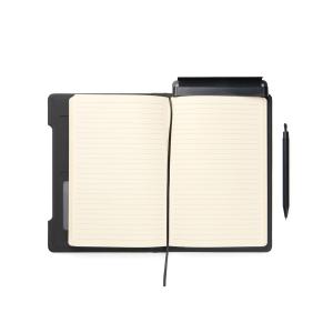 Изготовлен из переработанной бумаги, сертифицированной по стандарту RCS, с обложкой в классическом стиле Baltimore с матовым PU-покрытием, что делает его не только функциональным, но и визуально привлекательным. Магнитная линейка служит одновременно и линейкой, и держателем для ручки. Шариковая ручка в цвет набора с синими чернилами входит в комплект. Держатель для ручки легко трансформируется в подставку для телефона. Внутри обложки есть кармашки для карт, а блокнот легко заменить новым блоком, когда закончится старый.
