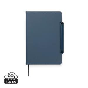Изготовлен из переработанной бумаги, сертифицированной по стандарту RCS, с обложкой в классическом стиле Baltimore с матовым PU-покрытием, что делает его не только функциональным, но и визуально привлекательным. Магнитная линейка служит одновременно и линейкой, и держателем для ручки. Шариковая ручка в цвет набора с синими чернилами входит в комплект. Держатель для ручки легко трансформируется в подставку для телефона. Внутри обложки есть кармашки для карт, а блокнот легко заменить новым блоком, когда закончится старый.