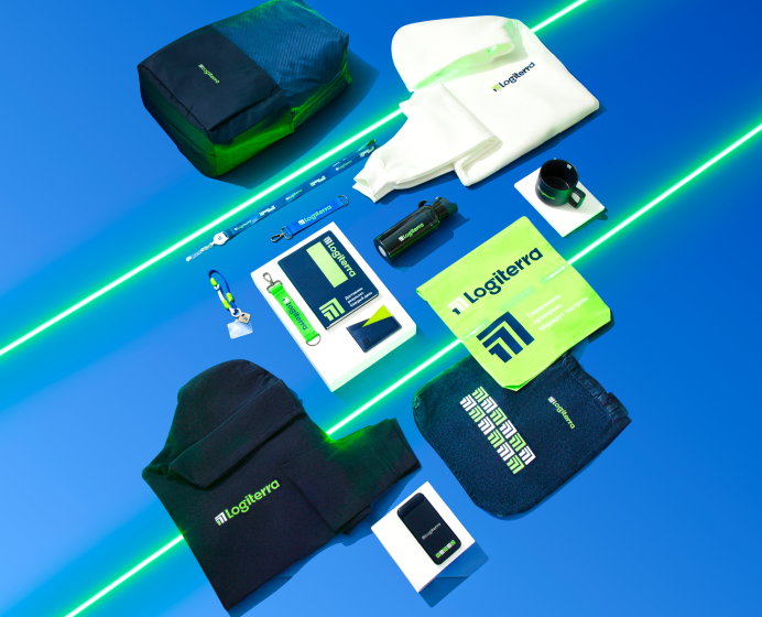 Набор для первого мерчшопа транспортно-логистической компании Logiterra. Разрабатываем первую пробную линейку продукции для сбора обратной связи