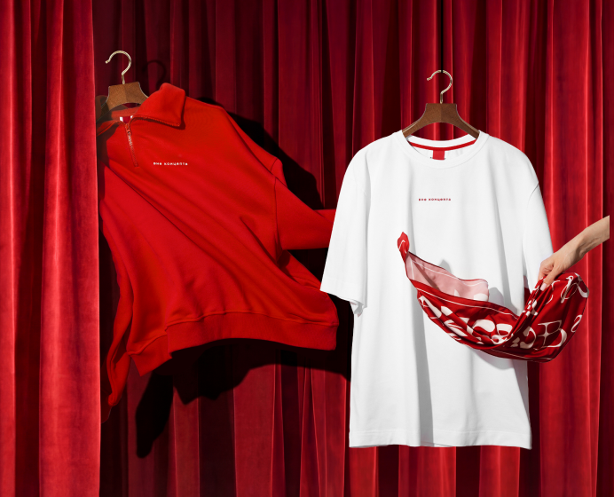 Для одежды мы использовали текстиль модных, актуальных пастельных цветов, комфортных для носки в жаркую погоду. Выбрали приятные наощупь, качественные материалы и определили модели. Декорировали их лаконичной вышивкой и акцентной киперной лентой с надписью “Расту вместе с QIWI”